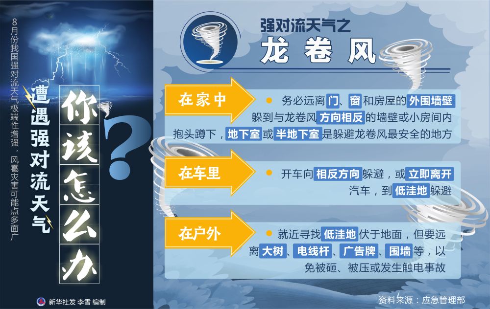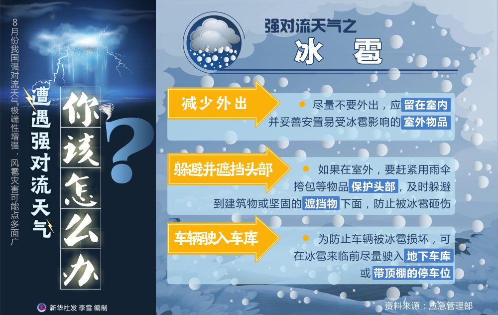 從應(yīng)急管理部獲悉,多方會(huì)商研判認(rèn)為,8月份中國強(qiáng)對(duì)流天氣極端性增強(qiáng),風(fēng)雹災(zāi)害可能點(diǎn)多面廣。遭遇強(qiáng)對(duì)流天氣,你該怎么辦?