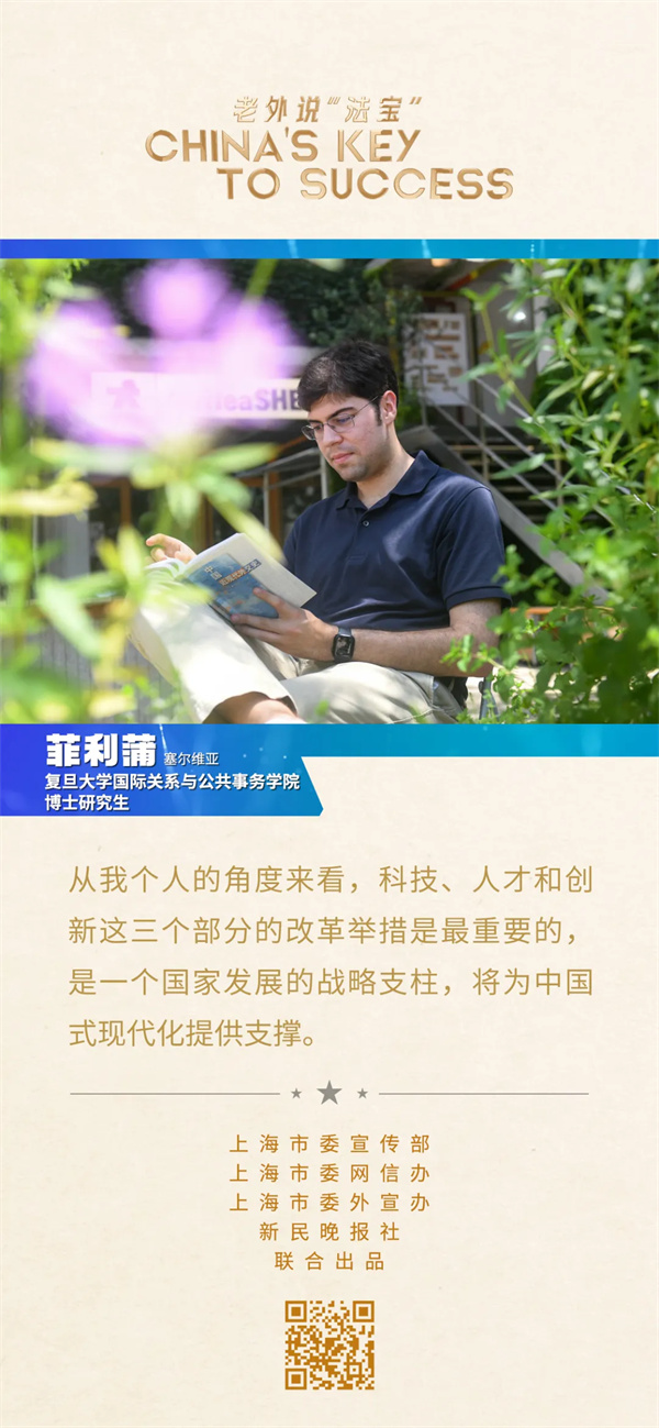 菲利蒲特別關(guān)注三中全會(huì)公報(bào)中關(guān)于科技、人才和創(chuàng)新的改革舉措。“從我個(gè)人的角度來看,這三個(gè)部分是最重要的,是一個(gè)國(guó)家發(fā)展的戰(zhàn)略支柱,將為中國(guó)式現(xiàn)代化提供支撐。”菲利蒲認(rèn)為,無論是發(fā)達(dá)國(guó)家還是發(fā)展中國(guó)家,科技、人才和創(chuàng)新這三個(gè)因素都是關(guān)鍵,此次三中全會(huì)的改革舉措,已經(jīng)為三者進(jìn)行了最好的布局。