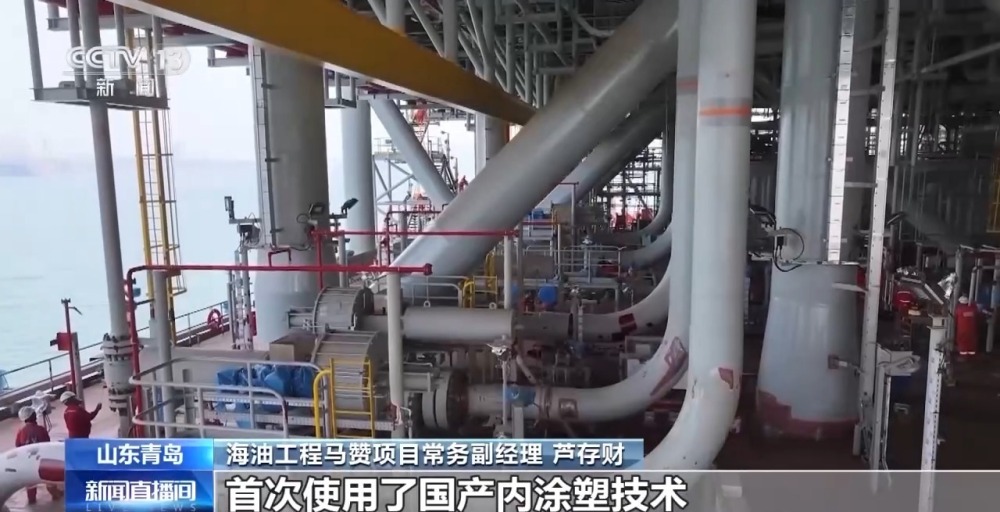 海油工程馬贊項目常務(wù)副經(jīng)理 蘆存財:我們現(xiàn)在看到的是36寸原油外輸管線,首次使用了國產(chǎn)內(nèi)涂塑技術(shù),解決硫化氫高的同時,實現(xiàn)了25年的長期安全服役。
