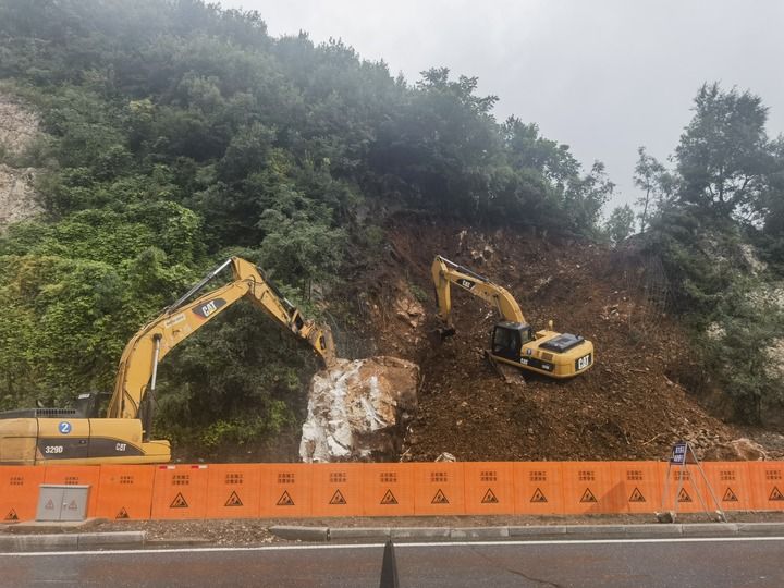 8月6日,大型機械設(shè)備在清理位于吉林省集安市下解放村一處山坡上的“落石”。新華社發(fā)