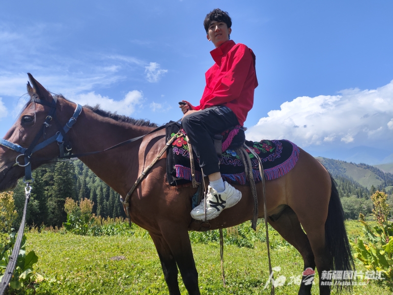 苗堉森很喜歡在新疆的大草原上策馬奔馳。本人供圖