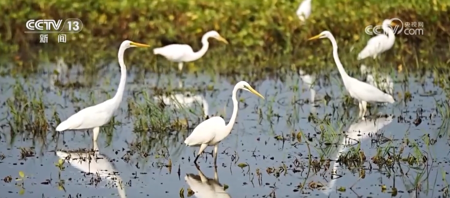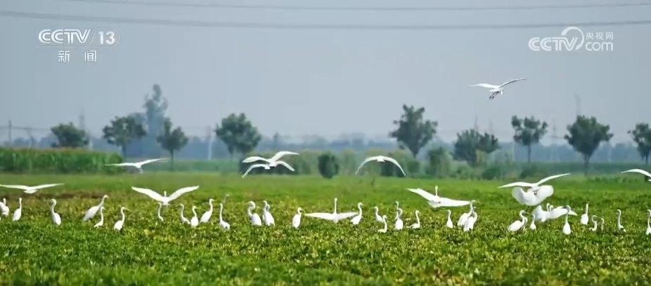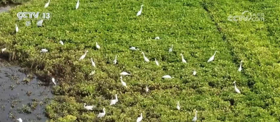 在河南周口市淮陽區(qū),由于近期降雨頻繁,當(dāng)?shù)毓胚\河不少低洼地帶變成灘涂濕地,多群白鷺匯聚于此,棲息覓食。
