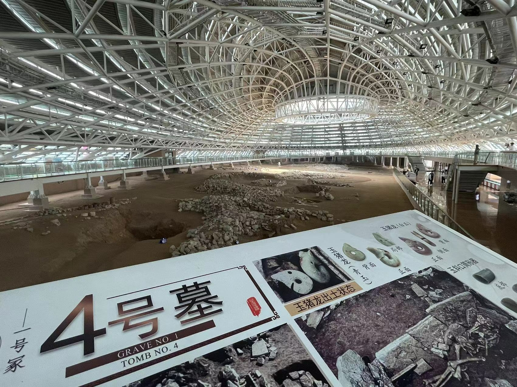 查海遺址是新石器時(shí)代古人類聚落遺址,距今約八千年。“中國(guó)人對(duì)龍的崇拜在查海時(shí)代就已經(jīng)出現(xiàn)。這個(gè)龍形堆石,是迄今為止我國(guó)考古發(fā)現(xiàn)的年代最早、形體最大的龍形象?!辈楹_z址博物館館長(zhǎng)李井巖告訴記者,這條“龍”采用當(dāng)?shù)卮笮【鶆虻募t褐色天然石塊為“鱗”,由人工堆砌擺放而來(lái),展示出巨龍就要騰空飛舞的態(tài)勢(shì)。