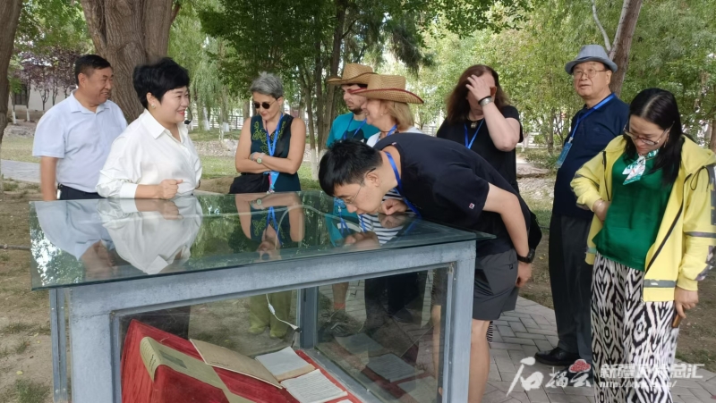 8月16日,中外漢學家、翻譯家、作家在察布查爾錫伯自治縣察布查爾報社參觀。石榴云/新疆日報記者 宋衛(wèi)國攝