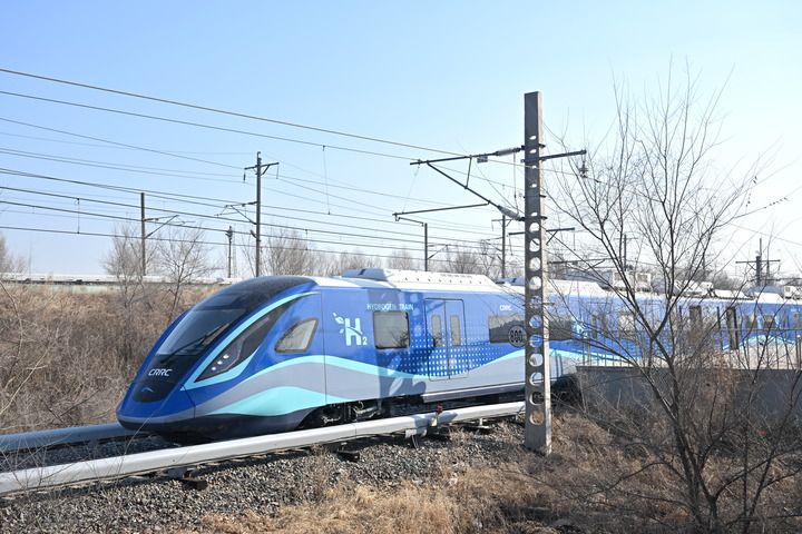 2024年3月21日,我國首列氫能源市域列車在位于長春的中車長客試驗線進行運行試驗。新華社發(fā)(中車長客股份公司提供)