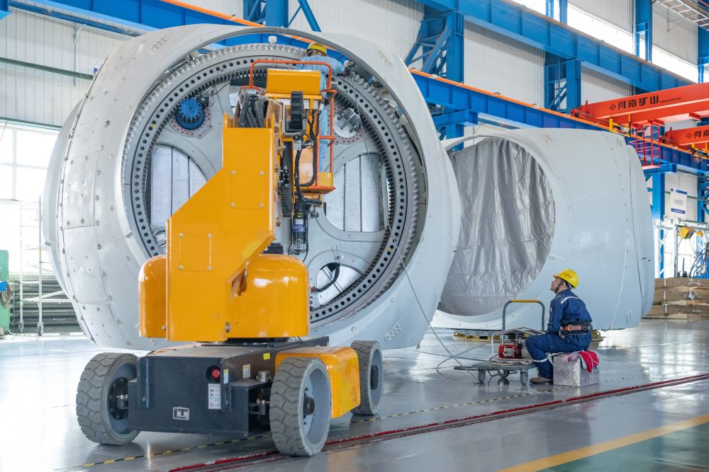 2024年4月28日,工人在位于黑龍江省齊齊哈爾市的中國一重集團有限公司風(fēng)電設(shè)備裝配車間加工風(fēng)電輪轂。新華社記者 謝劍飛 攝