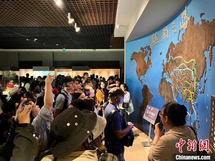8月18日,臺胞在甘肅省博物館絲綢之路文明展廳參觀。王牧雨 攝