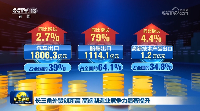 海關最新數據顯示,今年前7個月,長三角地區(qū)進出口規(guī)模創(chuàng)歷史新高,汽車、船舶、數控機床等產品出口亮眼,長三角地區(qū)高端制造業(yè)國際競爭力加速提升。