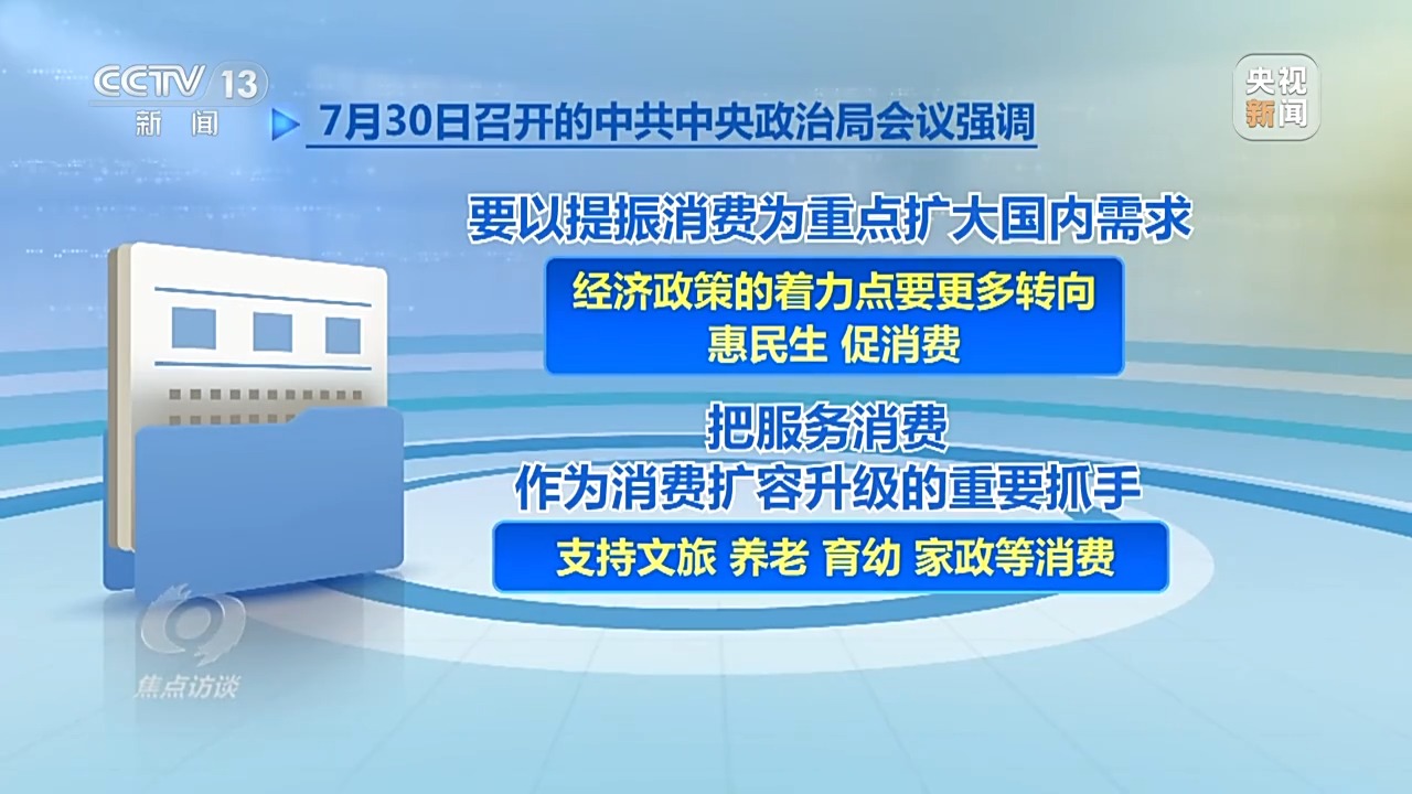 服務消費是釋放消費潛力的重要力量。7月30日召開的中共中央政治局會議強調,“要以提振消費為重點擴大國內需求,經(jīng)濟政策的著力點要更多轉向惠民生、促消費,把服務消費作為消費擴容升級的重要抓手,支持文旅、養(yǎng)老、育幼、家政等消費。”國務院于8月3日印發(fā)《關于促進服務消費高質量發(fā)展的意見》,提出“著力提升服務品質、豐富消費場景、優(yōu)化消費環(huán)境,以創(chuàng)新激發(fā)服務消費內生動能,培育服務消費新增長點”。這是我國首次專門就服務消費發(fā)展作出系統(tǒng)全面部署的政策文件。