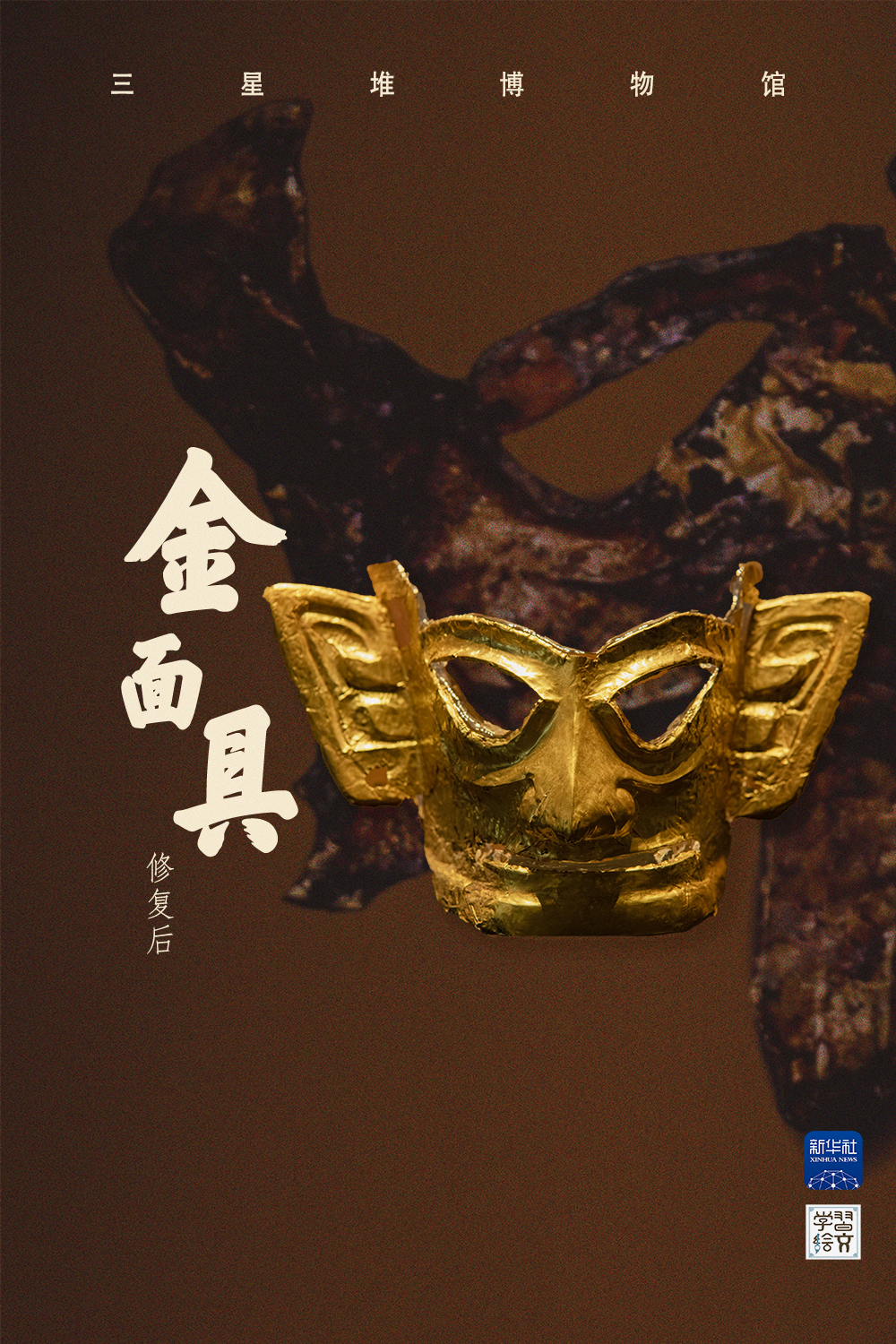 這是在三星堆博物館文物保護與修復館拍攝的修復后的金面具。