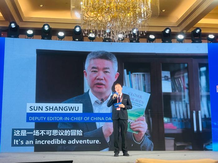 聶子瑞在論壇現(xiàn)場(chǎng)分享著作《太陽(yáng)升起:美國(guó)小哥見(jiàn)證中國(guó)扶貧奇跡》。林卓瑋 攝