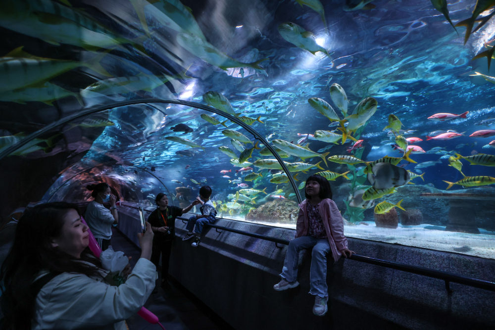 游客在大連圣亞海洋世界觀賞海洋魚(yú)類(lèi)(5月22日攝)。