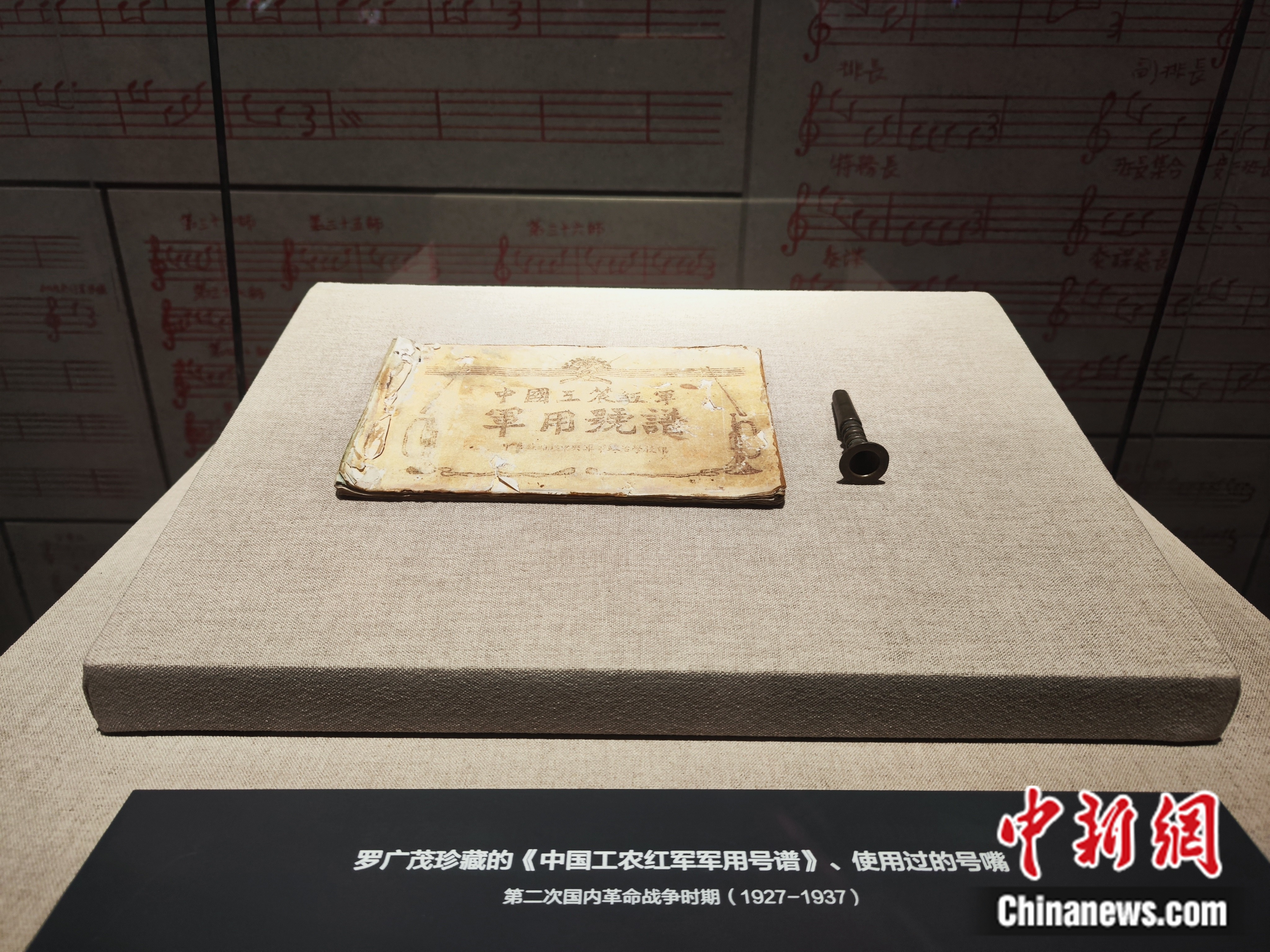 如此多的司號員設計,源于此地的“鎮(zhèn)館之寶”,一本1932年印制的《中國工農紅軍軍用號譜》。這是目前全國唯一一本最完整、正規(guī)出版、印刷的紅軍軍號譜。捐獻這本號譜的,正是老紅軍羅廣茂。
