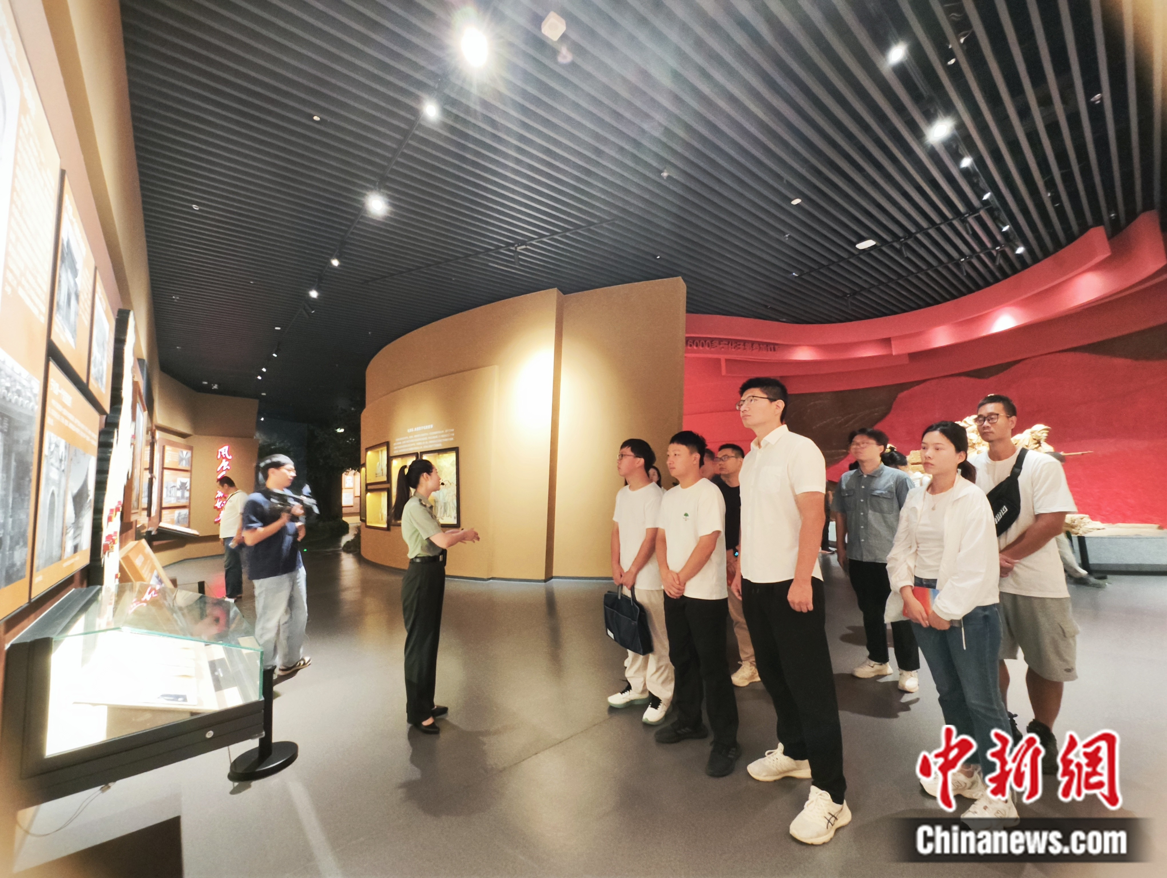 寧化縣長征精神教育基地內,講解員向采訪調研團講述歷史。劉越 攝