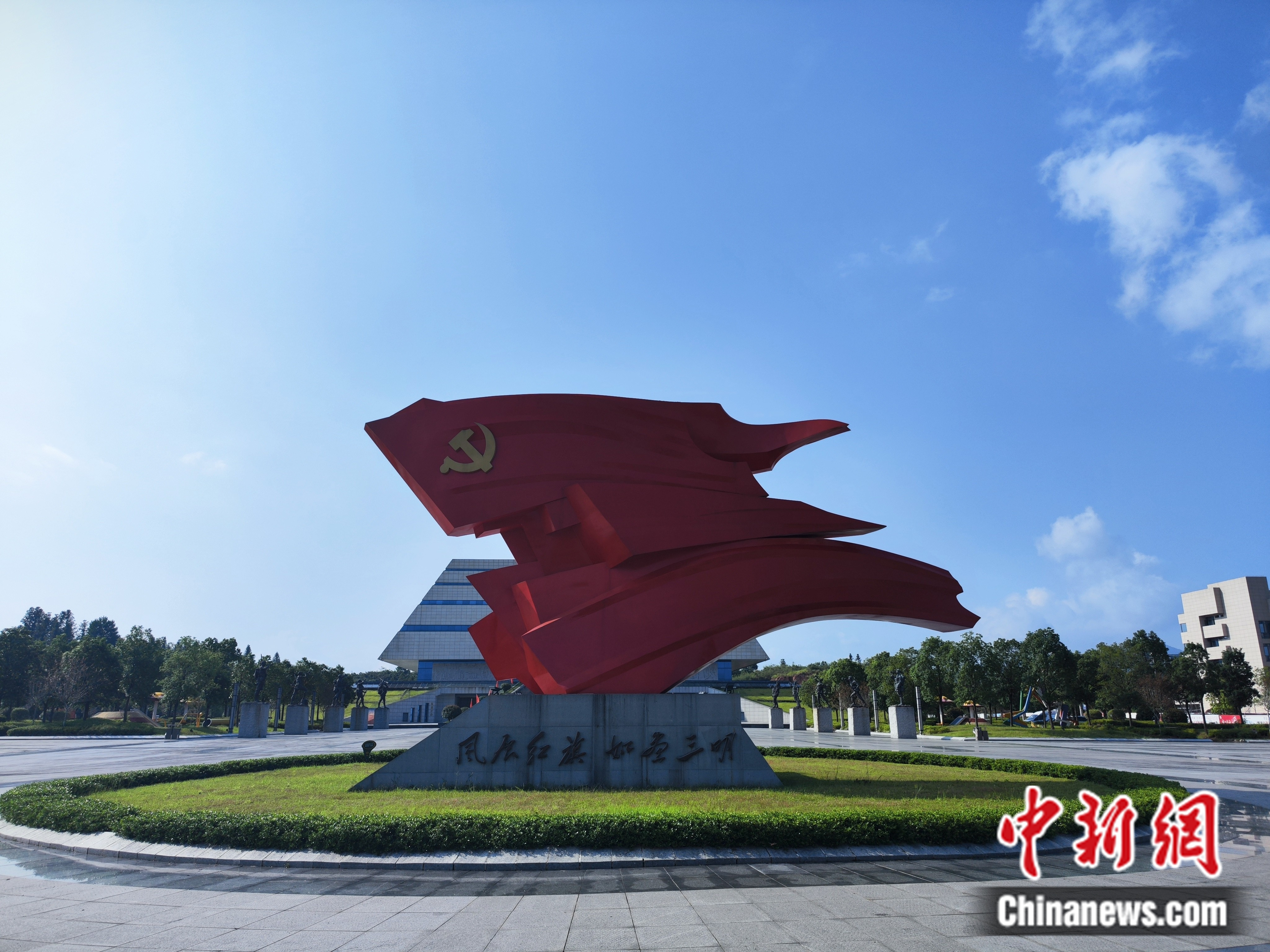 寧化縣長征精神教育基地外,一則“紅旗”主題雕塑引人注目。劉越 攝
