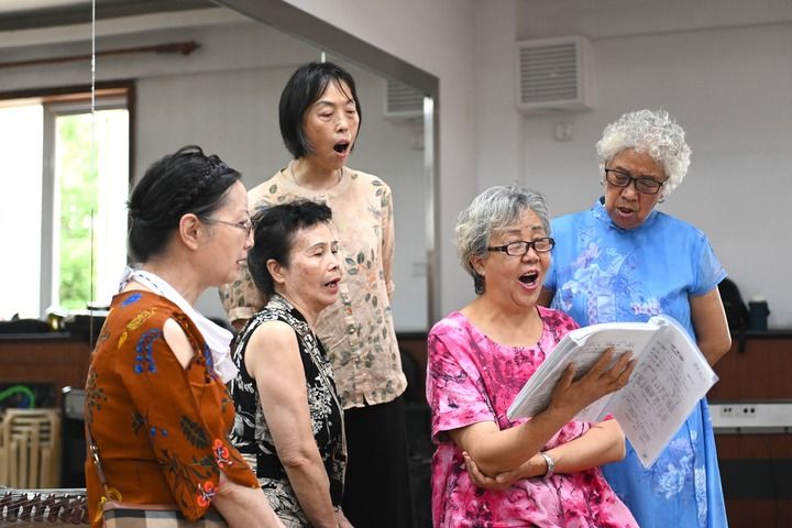 寧夏銀川市金鳳區(qū)長城花園社區(qū)居民在活動室排練節(jié)目(2024年6月20日攝)。新華社記者 毛竹 攝
