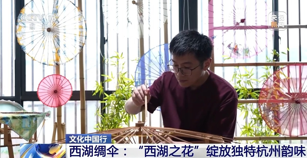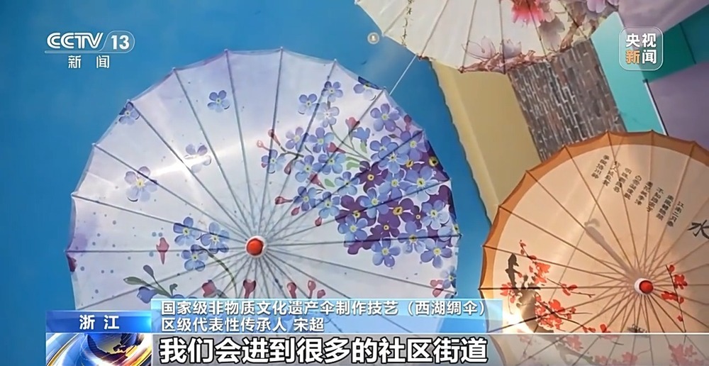 國家級非物質文化遺產傘制作技藝(西湖綢傘)區(qū)級代表性傳承人 宋超:我們會進到很多的社區(qū)街道,我們會進到中小學的校園、博物館、非遺展示館等等這樣的地方,去進行我們西湖綢傘技藝的展示展覽,包括各種各樣的體驗活動,以此讓更多人了解和認識到我們西湖綢傘這項技藝。