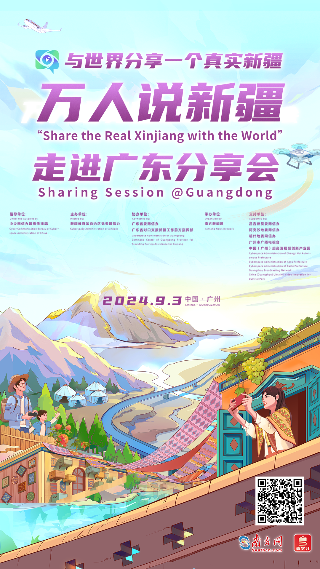 在交流互鑒中把新疆溫柔地說與全世界,在新粵兩地合作中感悟跨“粵”千里的援疆故事。“萬人說新疆”走進(jìn)廣東分享會(huì)將于9月2日至3日在廣州舉行。此次活動(dòng)由新疆維吾爾自治區(qū)黨委網(wǎng)信辦主辦,廣東省委網(wǎng)信辦、廣東省對(duì)口支援新疆工作前方指揮部協(xié)辦,南方新聞網(wǎng)承辦。分享會(huì)從國內(nèi)知名學(xué)者、外籍專家、海內(nèi)外博主、援疆干部、港澳青年等不同視角,講述有溫度、有情懷、接地氣的美好新疆故事。