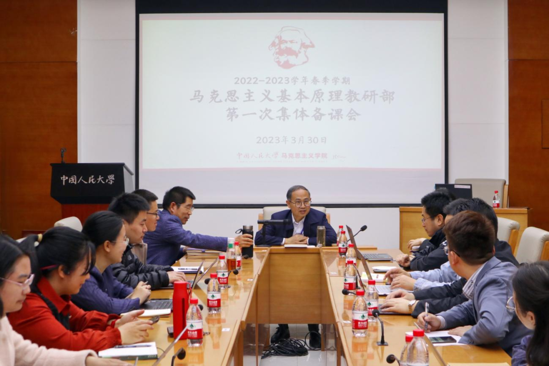 ▲中國(guó)人民大學(xué)舉辦《習(xí)近平新時(shí)代中國(guó)特色社會(huì)主義思想概論》集體備課會(huì),黨委書記張東剛領(lǐng)銜備課。