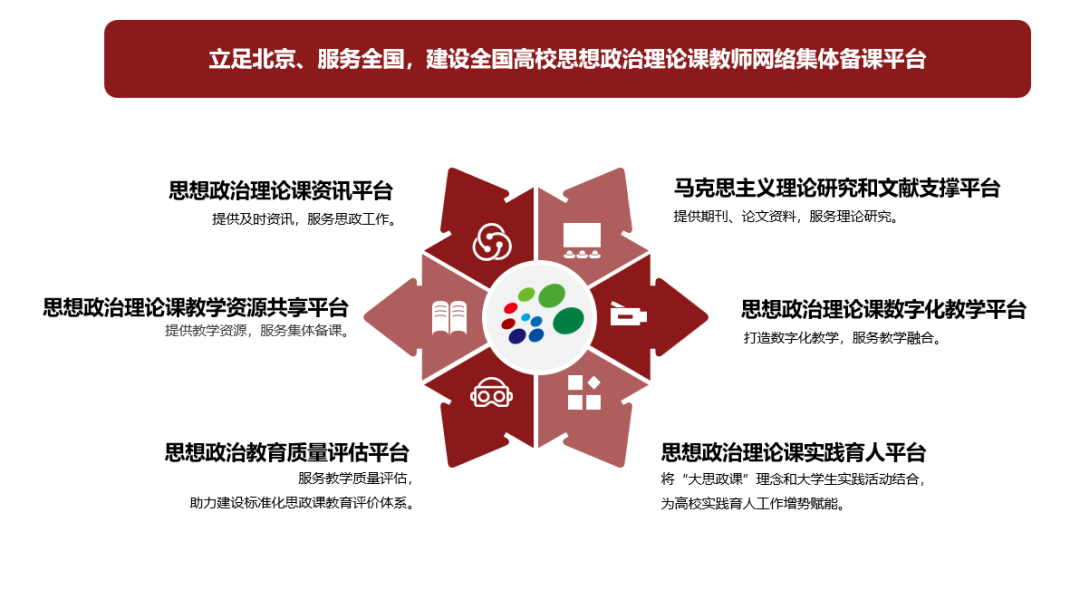 2019年的學(xué)校思想政治理論課教師座談會(huì)上,習(xí)近平總書記在談到各地各高校尤其是北京市的有益探索時(shí),專門提到了“北京高校思想政治理論課高精尖創(chuàng)新中心”。自2015年中心成立,中國(guó)人民大學(xué)全面建設(shè)面向大中小學(xué)思政課教師的一體化網(wǎng)絡(luò)資源平臺(tái),打造服務(wù)全國(guó)大中小學(xué)思政課教師的“中央廚房”。