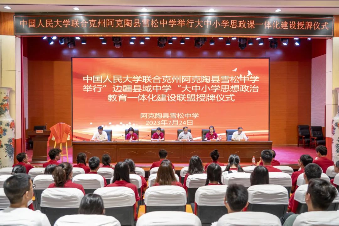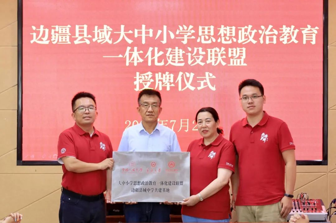 ▲中國(guó)人民大學(xué)向邊疆“大中小學(xué)思想政治教育一體化共建基地”授牌。
