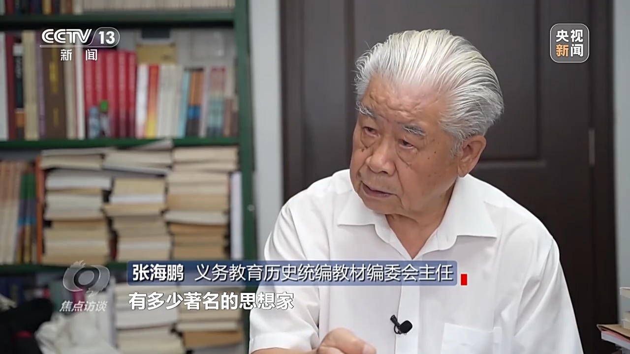 義務(wù)教育歷史統(tǒng)編教材編委會(huì)主任 張海鵬:講我們中國(guó)歷史上每一代有多少著名的思想家,有多少著名的政治家、軍事家、戰(zhàn)略家、科學(xué)家,對(duì)人類有貢獻(xiàn)的發(fā)明創(chuàng)造、文學(xué)藝術(shù)。這就是告訴我們,中華的文化是優(yōu)秀的,是值得我們熱愛的。