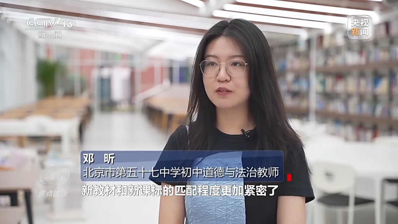 北京市第五十七中學(xué)初中道德與法治教師 鄧昕:新教材和新課標(biāo)的匹配程度更加緊密了,突出了核心素養(yǎng)里的重視實(shí)踐這個(gè)環(huán)節(jié),讓學(xué)生們從理論課堂走到社會(huì)實(shí)踐。