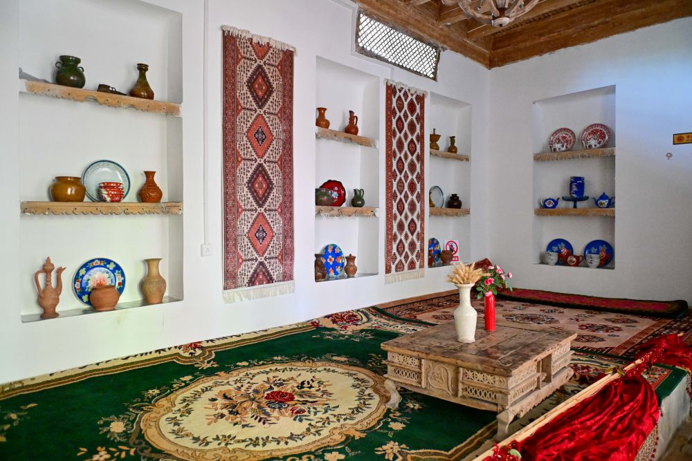來到龜茲小巷,各式各樣、色彩明艷的木門總能讓游人目光停駐,推門入院又是另一番風(fēng)景。走進(jìn)“爺爺?shù)募摇甭糜渭以L院,傳統(tǒng)古建筑氣息迎面而來,這座有上百年歷史的民居融和了多民族建筑藝術(shù)特點,門窗設(shè)計、前檐廊木結(jié)構(gòu)等與我國傳統(tǒng)木構(gòu)建筑一脈相承。