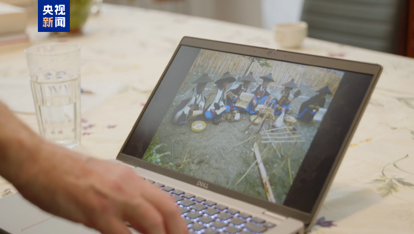 △托馬斯·海貝勒向記者展示在中國調研過程中拍攝到的照片