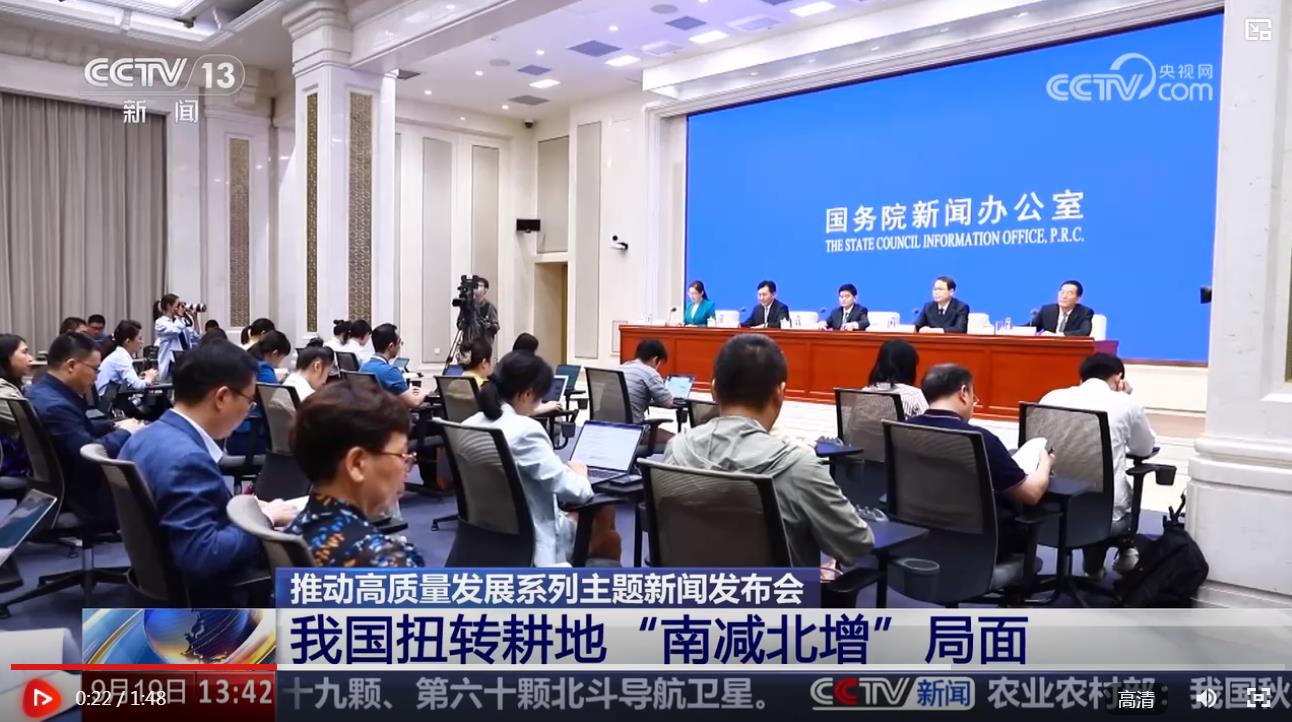 央視網(wǎng)消息:今天(9月19日)上午,國務(wù)院新聞辦公室舉行的“推動高質(zhì)量發(fā)展”系列主題新聞發(fā)布會,自然資源部相關(guān)負(fù)責(zé)人表示,我國持續(xù)推動落實耕地保護(hù),全國耕地總量實現(xiàn)連續(xù)三年凈增加,并扭轉(zhuǎn)了耕地“南減北增”局面。