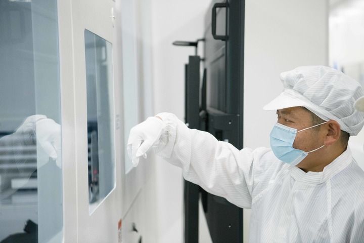 8月24日,在安徽華晟新能源科技股份有限公司的異質(zhì)結(jié)光伏電池及組件工廠內(nèi),技術(shù)人員在對(duì)產(chǎn)品進(jìn)行檢測。