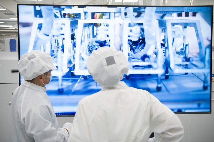 8月20日,在安徽華晟新能源科技股份有限公司的異質(zhì)結(jié)光伏電池及組件工廠內(nèi),工作人員在查看智能化產(chǎn)線運(yùn)行情況。