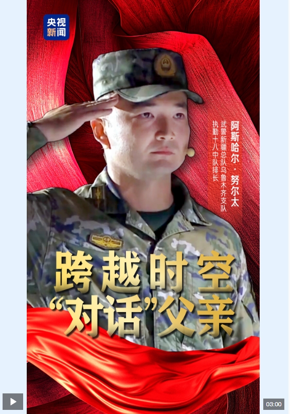 21日晚《把青春華章寫在祖國大地上》大思政課網(wǎng)絡(luò)主題活動(dòng)現(xiàn)場,投筆從戎的南開學(xué)子阿斯哈爾 · 努爾太,通過AI技術(shù)穿越時(shí)空與父親對話。阿斯哈爾獻(xiàn)給父親的一個(gè)軍禮,令無數(shù)人動(dòng)容。