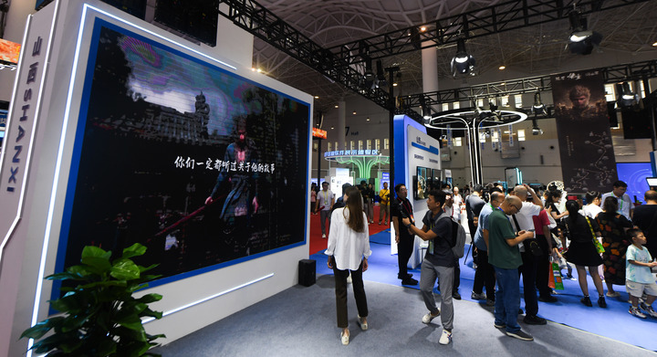 數(shù)博會(huì)上,國(guó)產(chǎn)游戲《黑神話(huà):悟空》備受矚目。山西展團(tuán)以游戲中“悟空”路線(xiàn)為主題,重點(diǎn)展示了一批介紹山西古建筑、歷史文化遺產(chǎn)的出版物,“悟空拍照區(qū)”成了“熱門(mén)打卡地”。