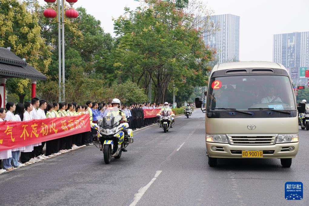9月25日,載有黃公略烈士遺骸的車輛從吉安市青原區(qū)市區(qū)經過,市民在街道兩旁送別。新華社記者 周密 攝