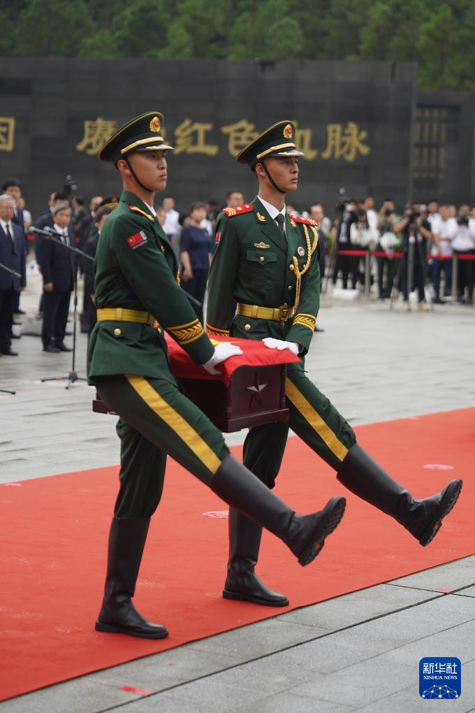 隨著《思念曲》響起,在2名禮兵持槍護衛(wèi)下,2名禮兵護送黃公略烈士棺槨緩緩步入現場。全場奏唱中華人民共和國國歌。全體人員脫帽肅立,向烈士默哀。18名禮兵鳴槍3響,向烈士致敬。