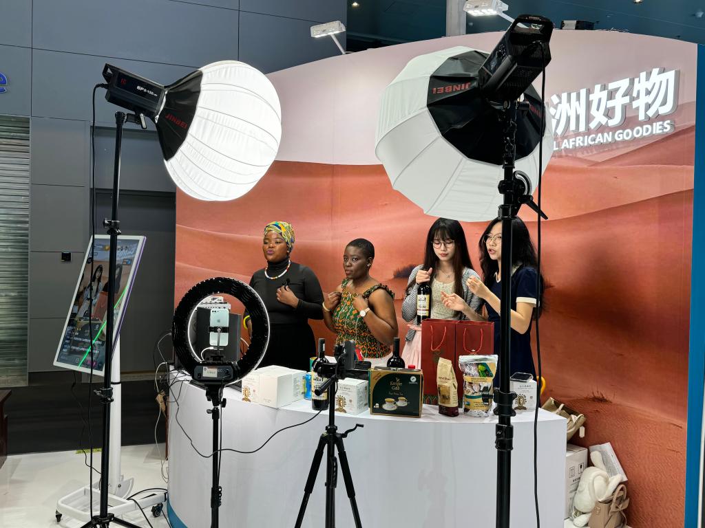 南非的紅酒、埃塞俄比亞的咖啡、肯尼亞的紅茶……在“智慧非洲”展臺(tái)一角,來自南非和中國的4名大學(xué)生變身帶貨主播,通過TikTok和抖音平臺(tái)將各類“非洲好物”推廣至海內(nèi)外。