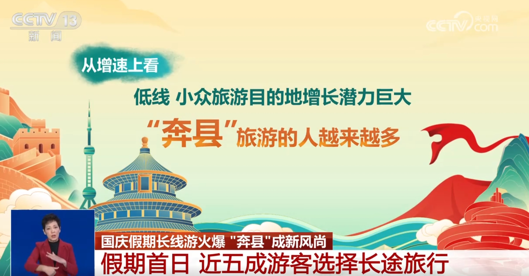 今年上半年,規(guī)模以上文化及相關(guān)產(chǎn)業(yè)企業(yè)實(shí)現(xiàn)營(yíng)收近6.5萬(wàn)億元,同比增長(zhǎng)7.5%;前三季度,國(guó)內(nèi)旅游人次預(yù)計(jì)達(dá)42.9億,同比增長(zhǎng)16.8%;入境旅游人次預(yù)計(jì)達(dá)0.95億,同比增長(zhǎng)55.4%,更多外國(guó)民眾來(lái)華旅游,體驗(yàn)賓至如歸、感受美好中國(guó)。