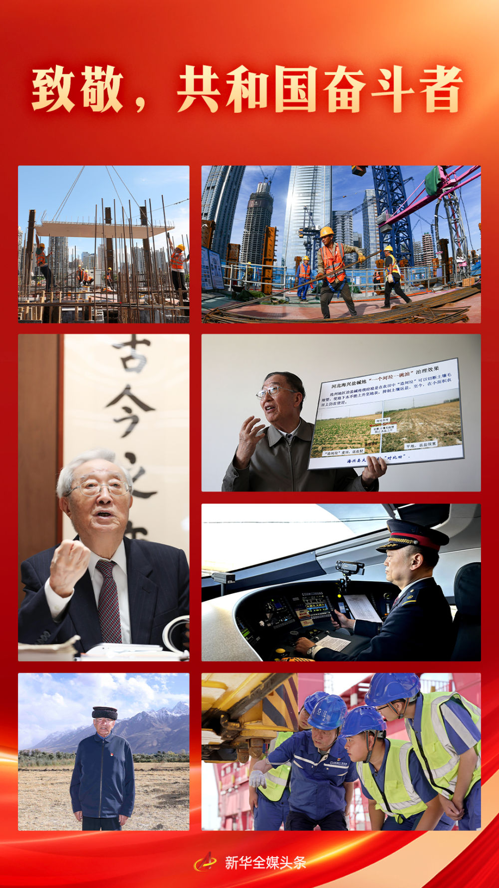 田間地頭、工廠車(chē)間、科研一線,在黨的領(lǐng)導(dǎo)下,共和國(guó)的奮斗者們勠力同心、開(kāi)拓進(jìn)取。他們的身影,定格成最美麗的風(fēng)景,匯聚起全面建設(shè)社會(huì)主義現(xiàn)代化國(guó)家新征程上的磅礴力量?! ?/p>
