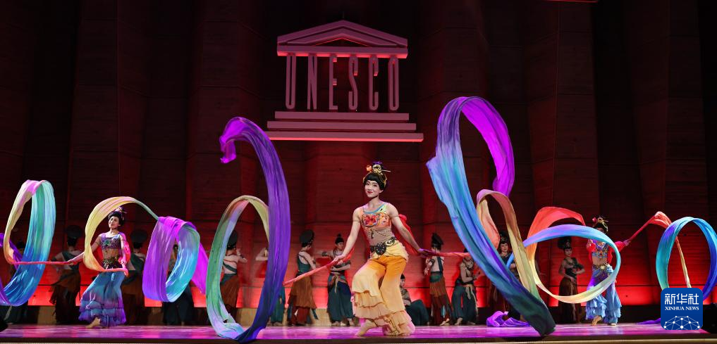 9月24日,在位于法國(guó)巴黎的聯(lián)合國(guó)教科文組織總部,中國(guó)殘疾人藝術(shù)團(tuán)的演員在國(guó)慶75周年招待會(huì)上表演。新華社記者 高靜 攝