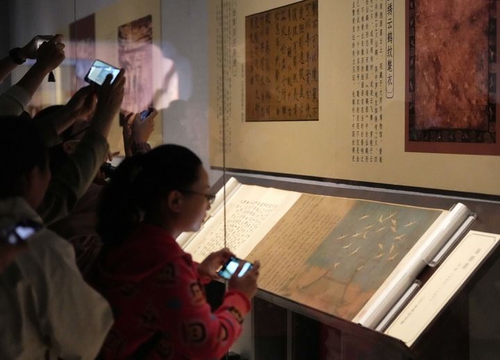 一群仙鶴翱翔空中,如云似霧,姿態(tài)百變,蔚為大觀。國(guó)慶前夕,古畫(huà)《瑞鶴圖》在遼寧省博物館“山河與共——遼金歷史文化主題文物展”中一展真顏,吸引了不少外地觀眾專(zhuān)程奔赴沈陽(yáng),一睹國(guó)寶風(fēng)采。