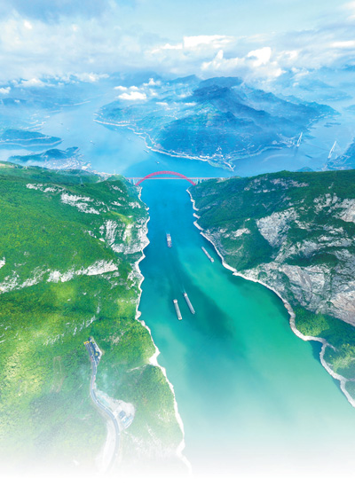 綠色轉(zhuǎn)型,高質(zhì)量發(fā)展動能澎湃。黃金水道暢通低碳,今年前7月長江干線港口完成貨物吞吐量超22億噸,純電動游輪往來穿梭、綠色港口點綴其間。“綠色引擎”更加強(qiáng)勁,烏東德、白鶴灘、溪洛渡、向家壩、三峽、葛洲壩6庫聯(lián)調(diào),1滴長江水發(fā)6次電,世界最大清潔能源走廊總裝機(jī)容量達(dá)7169.5萬千瓦。創(chuàng)新引領(lǐng)綠色發(fā)展,現(xiàn)代產(chǎn)業(yè)集群快速壯大,新動能新優(yōu)勢積極塑造發(fā)展。