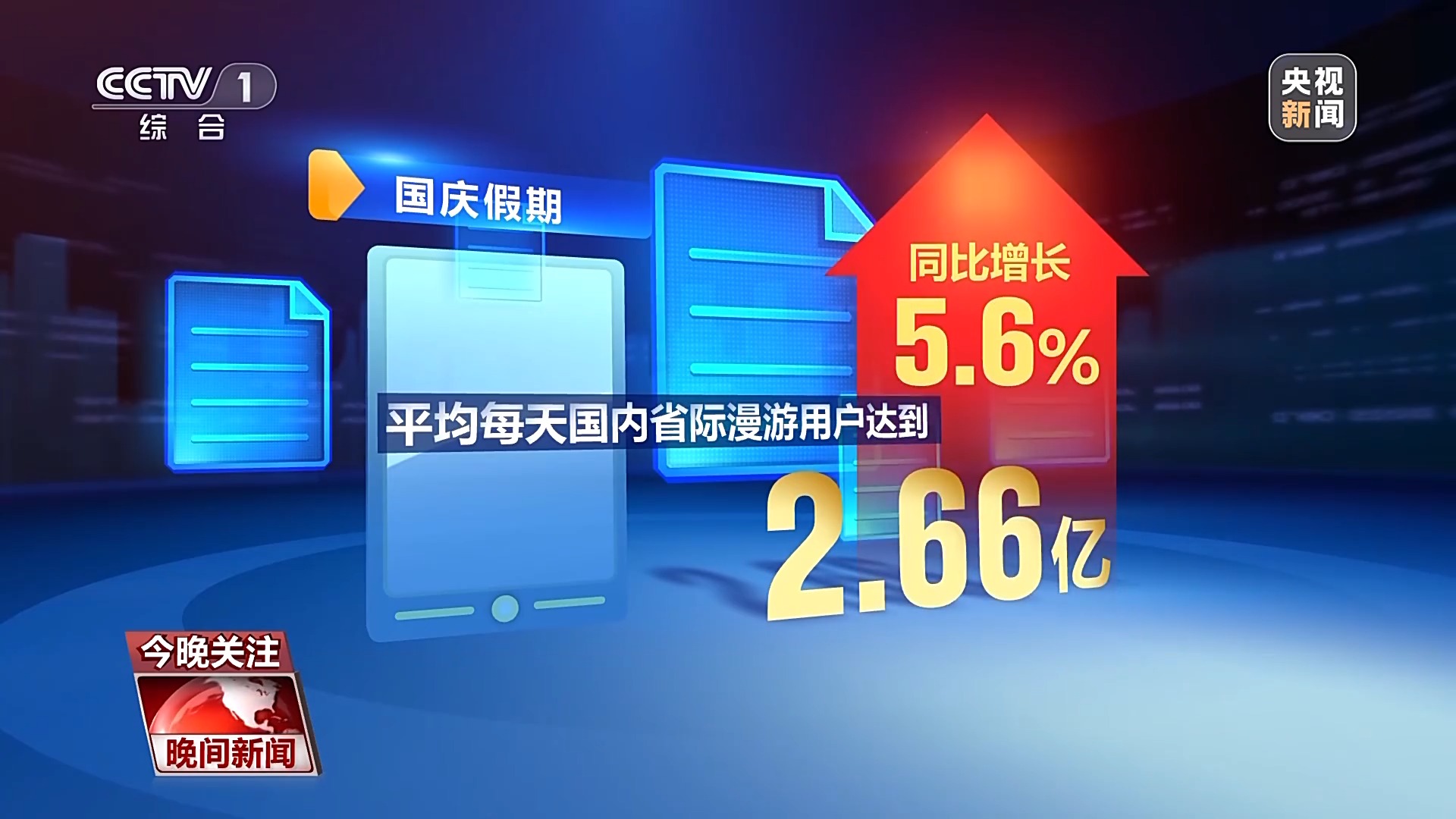 記者從工業(yè)和信息化部了解到,國(guó)慶假期,平均每天國(guó)內(nèi)省際漫游用戶(hù)達(dá)2.66億,同比增長(zhǎng)5.6%;國(guó)際及港澳臺(tái)地區(qū) 平均每天漫游入境用戶(hù)達(dá)696萬(wàn),同比增長(zhǎng)20.7%;5G/4G日均流量同比增長(zhǎng)13%。