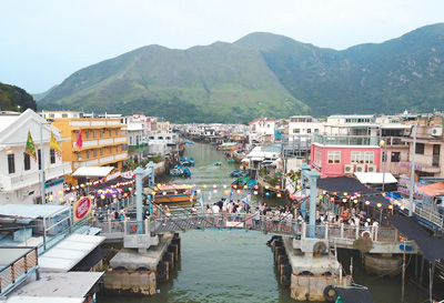 旅客在香港大澳漁村深度游,感受當?shù)伧攘Α?/p>