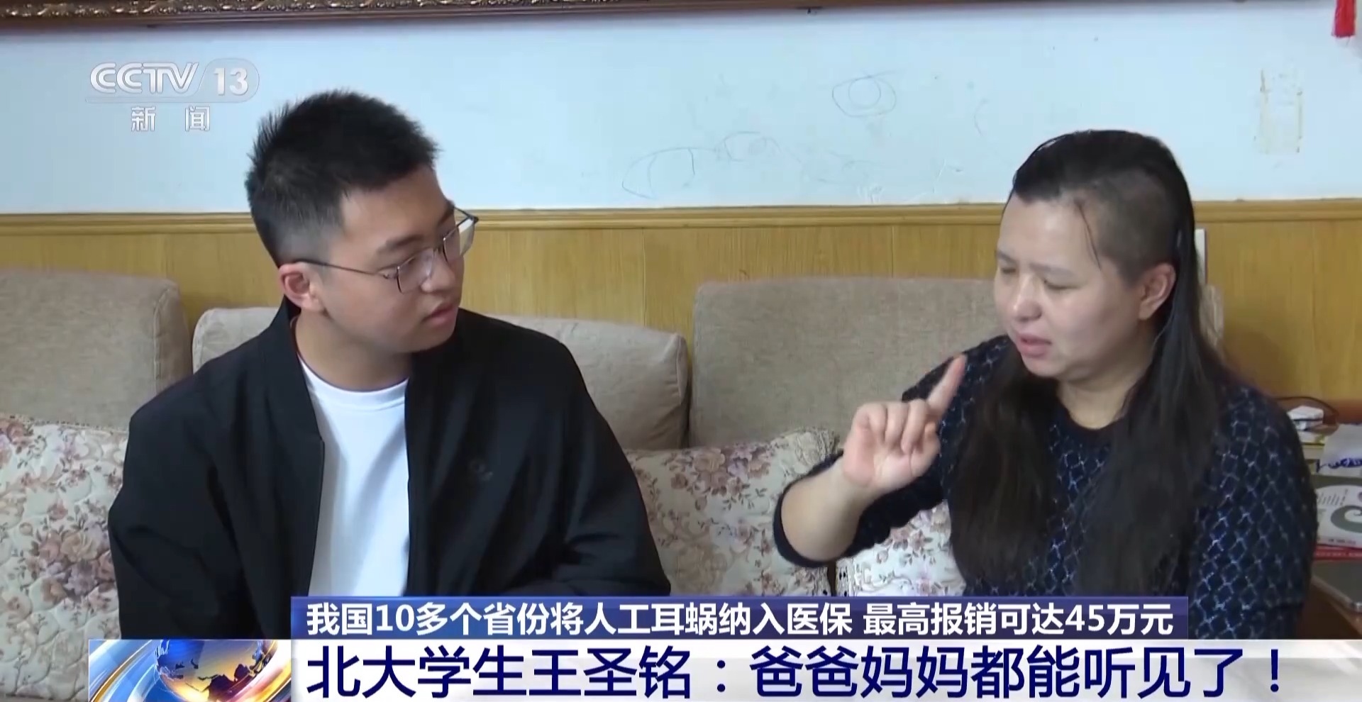 以前,人工耳蝸植入主要針對(duì)孩子,現(xiàn)在有了醫(yī)保報(bào)銷,一些耳聾的成年人也有條件植入人工耳蝸了。今年7月考上北京大學(xué)臨床醫(yī)學(xué)院的王圣銘一直有一個(gè)愿望,就是給耳聾的父母裝上人工耳蝸,讓他們聽(tīng)得見(jiàn)他叫一聲“爸爸、媽媽”。在醫(yī)保和公益基金的支持下,王圣銘的父母,在失聰40多年之后成功植入了人工耳蝸。