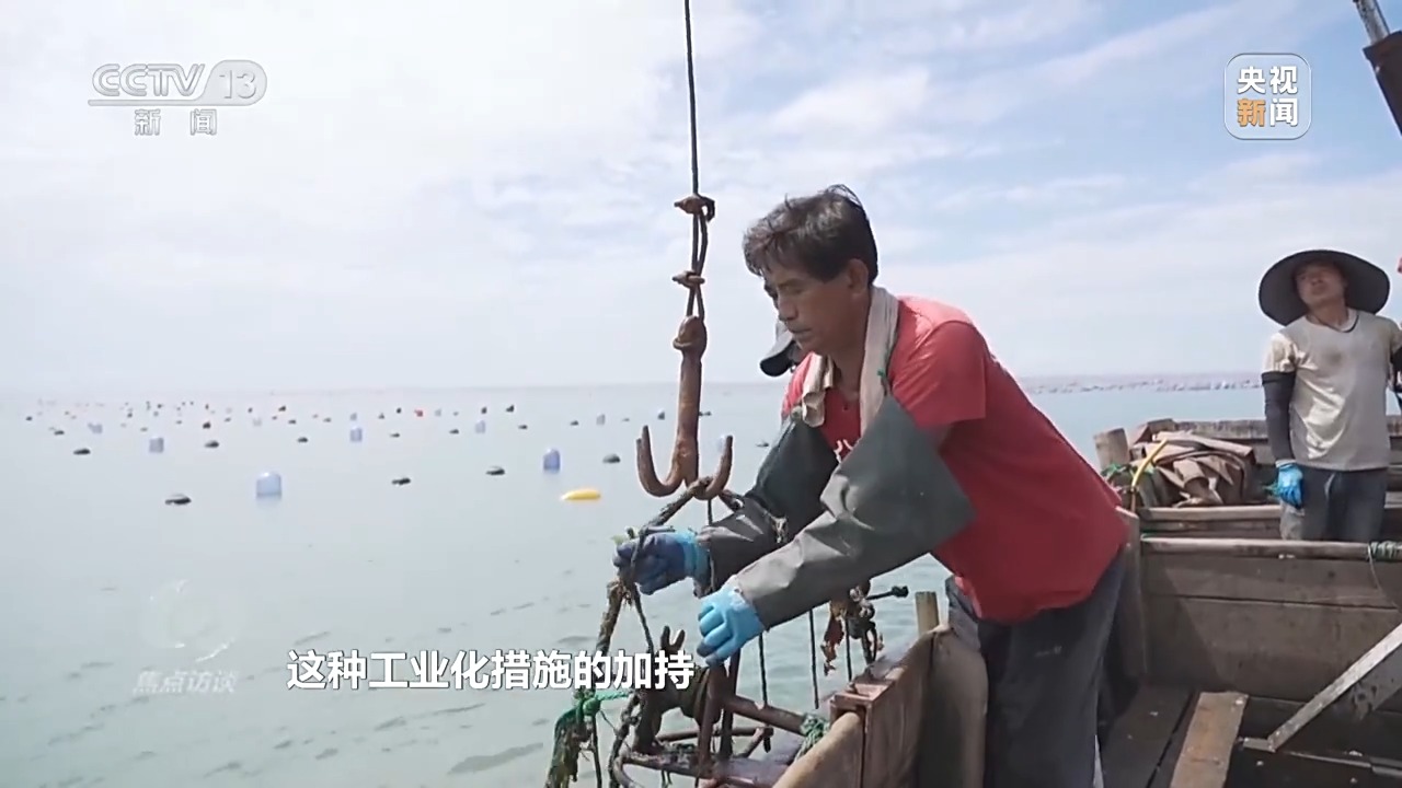 中國科學院海洋研究所研究員 張國范:“比如容量的控制,包括溯源技術、凈化等工業(yè)化措施的加持。我們過去主要在黃海渤海進行養(yǎng)殖,現(xiàn)在擴展到福建東海以及廣東、廣西、海南南海,每年養(yǎng)殖面積達到100萬畝,產(chǎn)量100萬噸,產(chǎn)值100個億?!?/p>