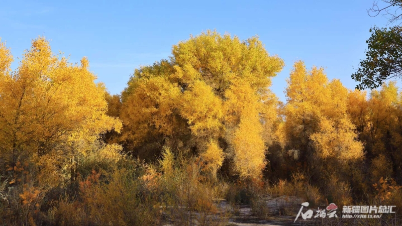 金秋十月,新疆各地胡楊林逐漸金黃一片,在藍(lán)天的映襯下,呈現(xiàn)出油畫般濃烈的色彩?!氨淘铺?,黃葉地,秋色連波”的秋日限定視覺盛宴已開啟,各地紛紛推出豐富多樣的活動,胡楊樹下的音樂會、胡楊林間的騎行、徒步比賽、美食活動、農(nóng)民畫展、服裝秀……吸引疆內(nèi)外游客共赴胡楊之約。
