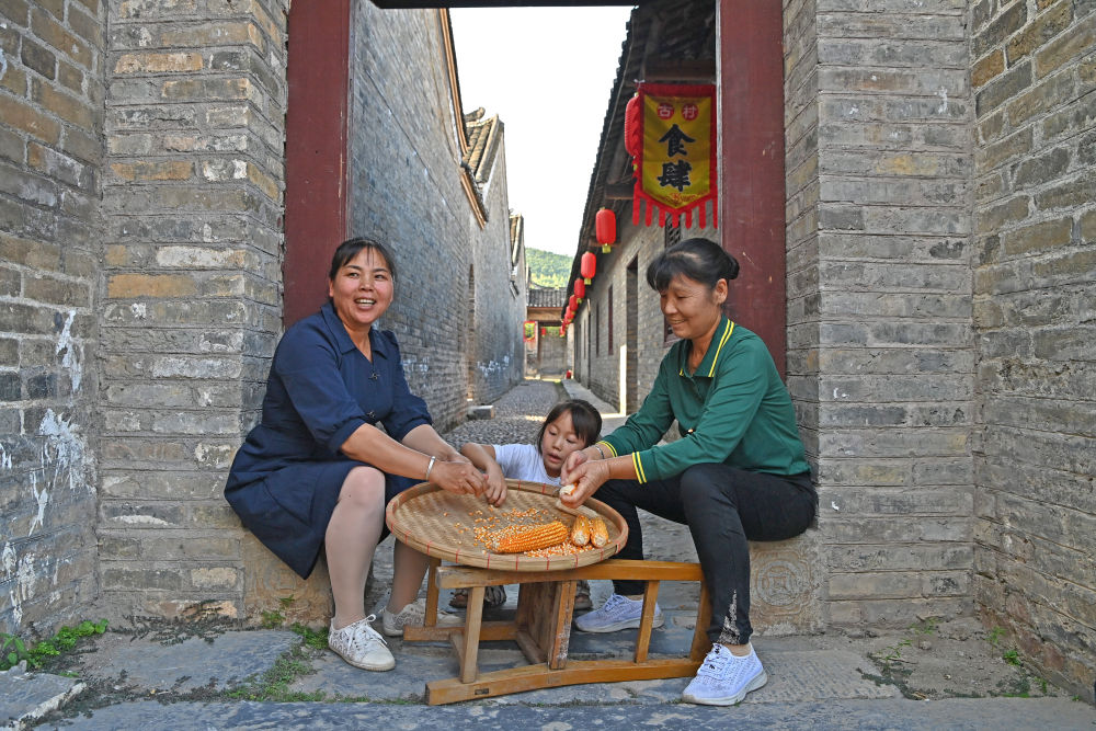 村民在廣西來(lái)賓市象州羅秀鎮(zhèn)納祿村剝玉米(10月10日攝)。