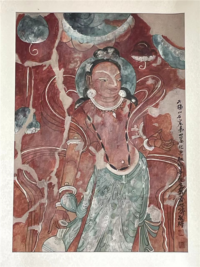 趙彤說,跟著師傅學(xué)習(xí)的過程也是自身修養(yǎng)不斷提升的過程,臨摹壁畫可以讓她更加全面的了解天梯山石窟,對她的講解有很大幫助。