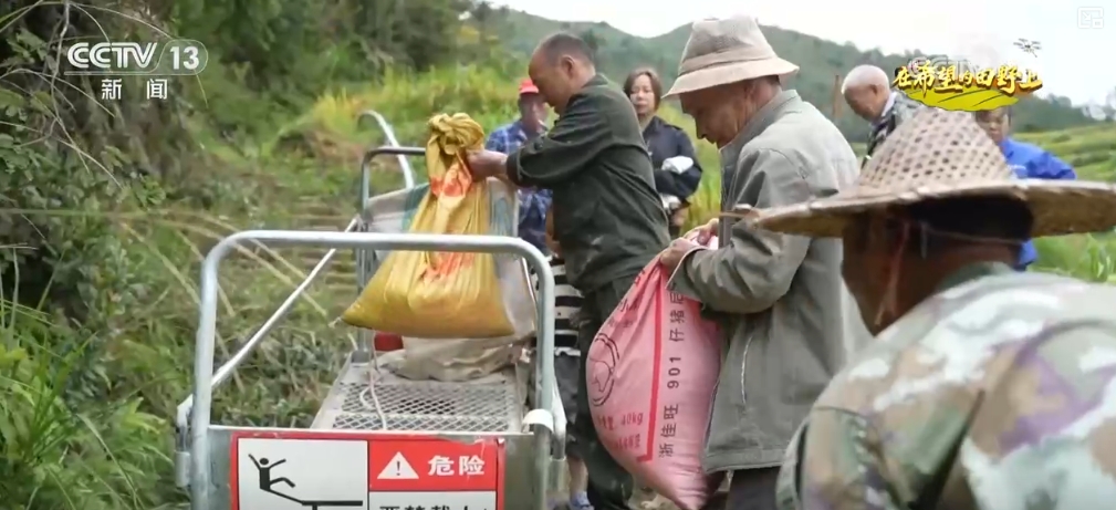 在景寧縣沙灣鎮(zhèn)葉橋村的高山梯田上,村民們正忙著將成熟的稻谷收割、脫粒,裝袋后通過(guò)軌道車運(yùn)至山下,山野上下一派豐收的繁忙景象。而十多年前,這里因水源缺乏、外出務(wù)工人員增多,曾是一片撂荒地。